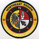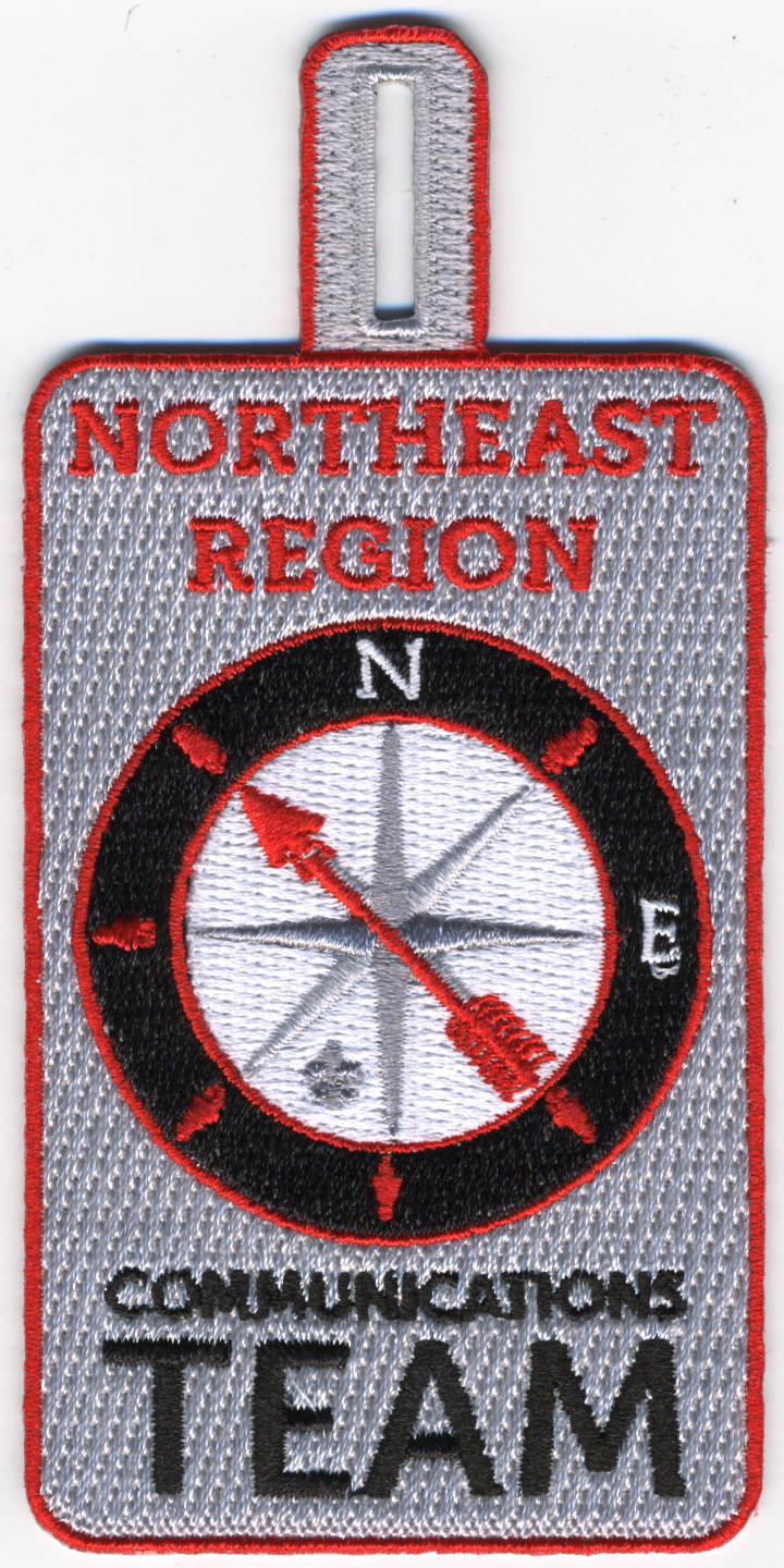 Communications Team | Gry | Red | C | Red/Blk | vrect | Gry | Compass rose; “Northeast Region Communications Team”; cut edge; button loop |