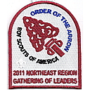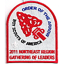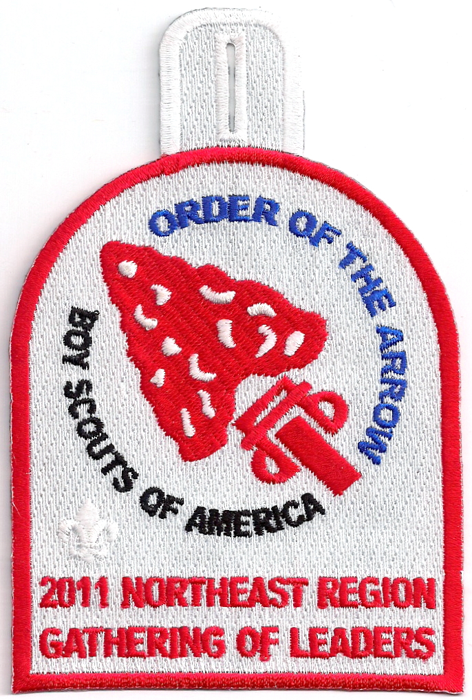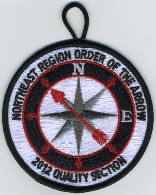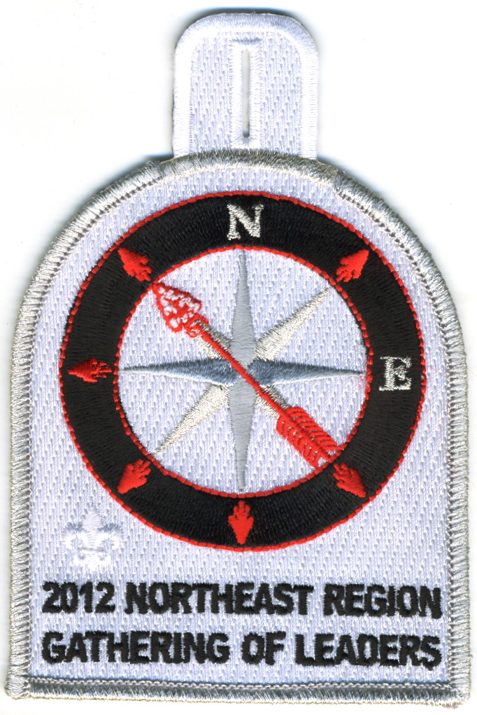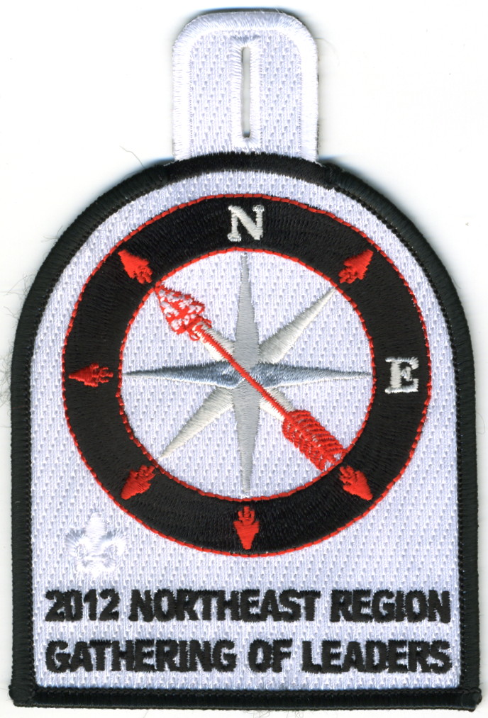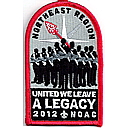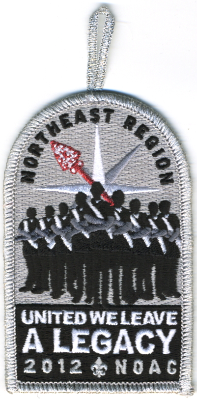 LGy | SMy | R | Blk/Wht | dome | Wht | Arrowmen with crossed arms; “United We Leave a Legacy”; NOAC 2012; button loop; Region Chairman’s recognition patch |