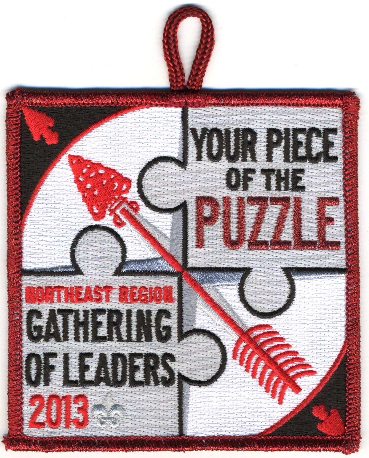 2013 Gathering of Leaders | M/C | RMy | R | M/C | square | LGy | Puzzle pieces over compass rose; “Your Piece of the Puzzle”; button loop |