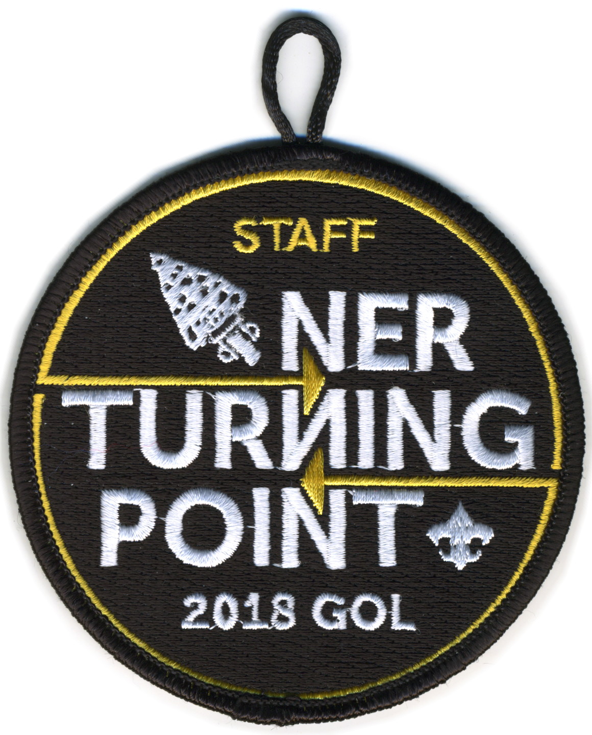 2018 Gathering of Leaders Staff | Blk | Blk | R | Wht/Yel | round | Wht | White lettering and yellow highlight; “NER Turning Point”; “2018 GOL”; yellow “STAFF”; button loop; staff issue |
