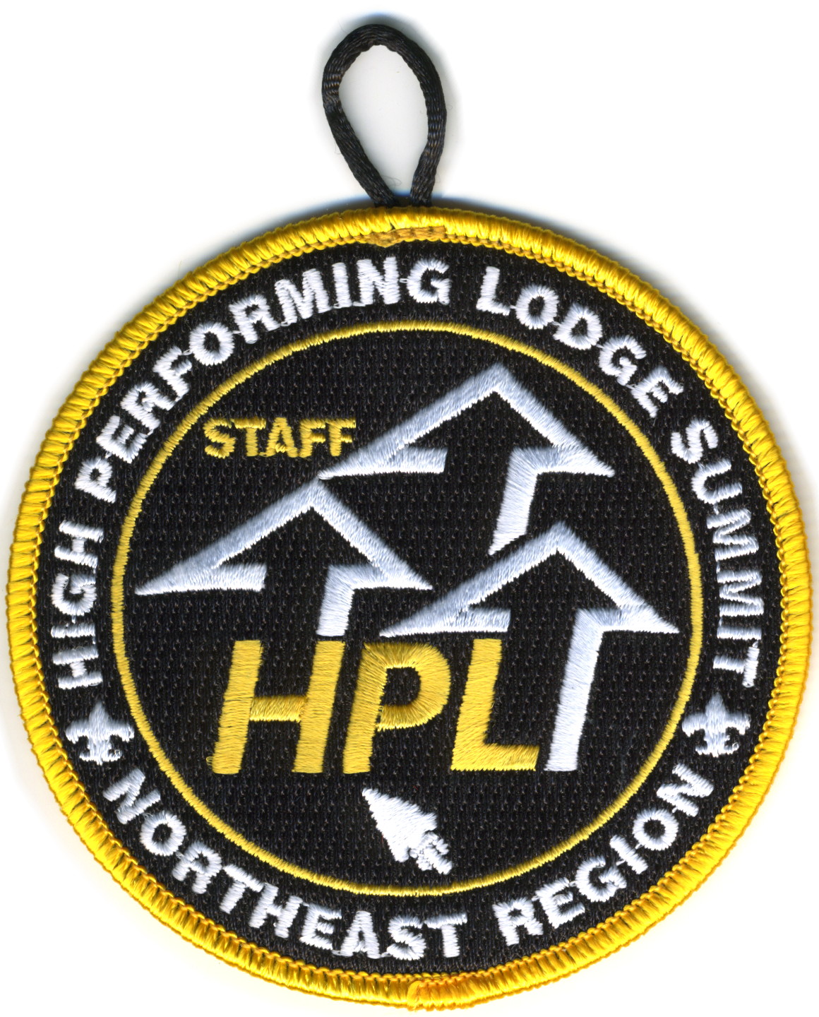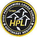 2018 High Performing Lodge Summit Staff | Blk | Yel | R | Wht/Yel | round | Wht | “High Performing Lodge Summit”; “Northeast Region”; yellow “STAFF”; button loop; staff issue |