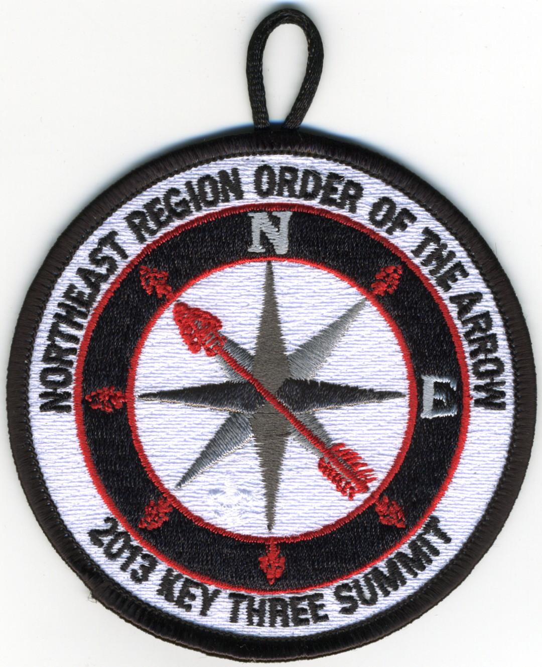 2013 Key Three Summit | Wht | Blk | R | Blk | round | Wht | Compass rose; “2013 Key Three Summit”; button loop |