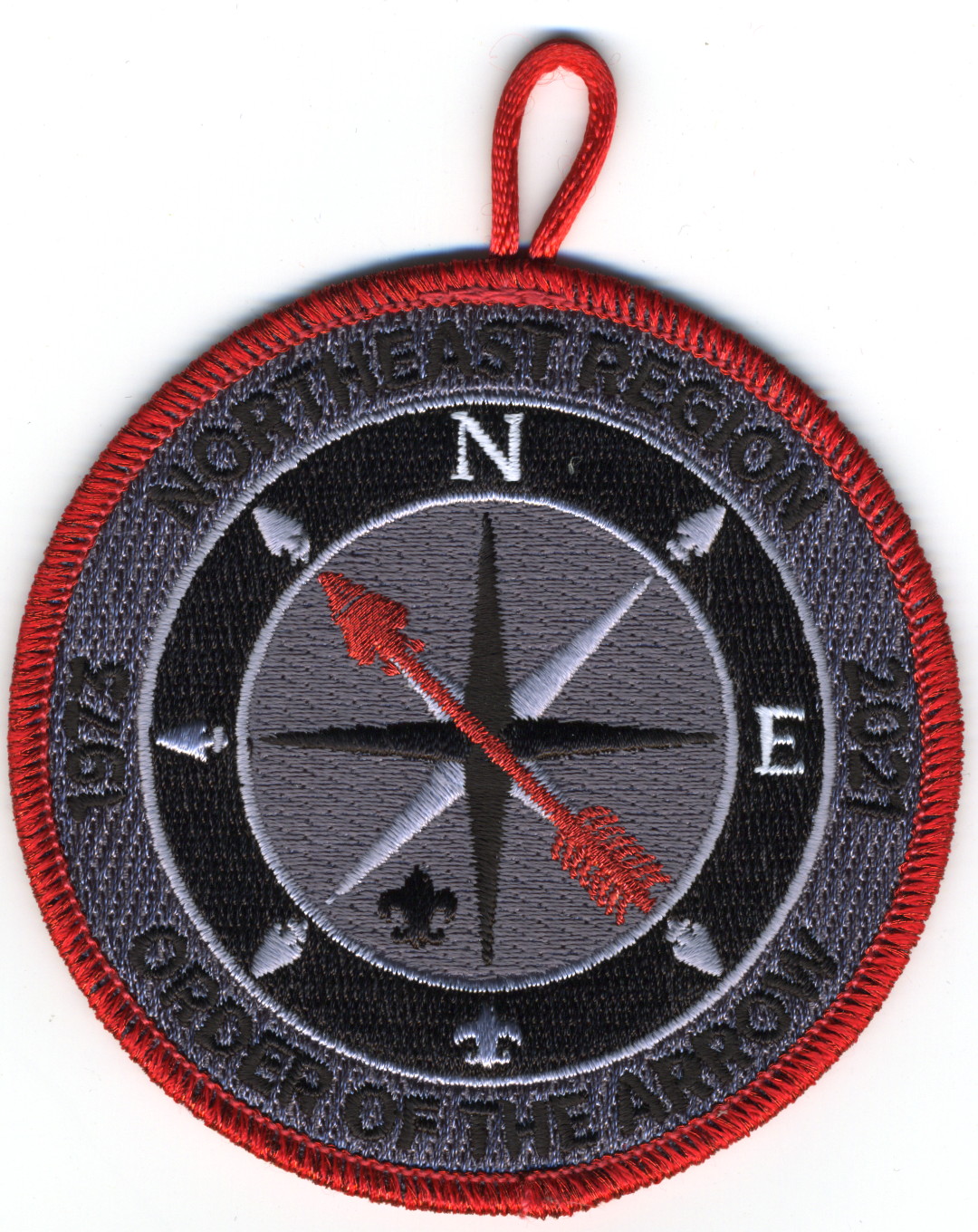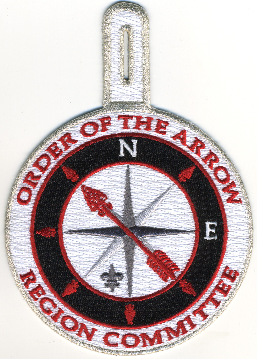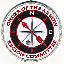 Region OA Committee | Wht | SMy | R | Red | round | Gry | Compass rose; “Region Committee”; rolled edge; button loop |