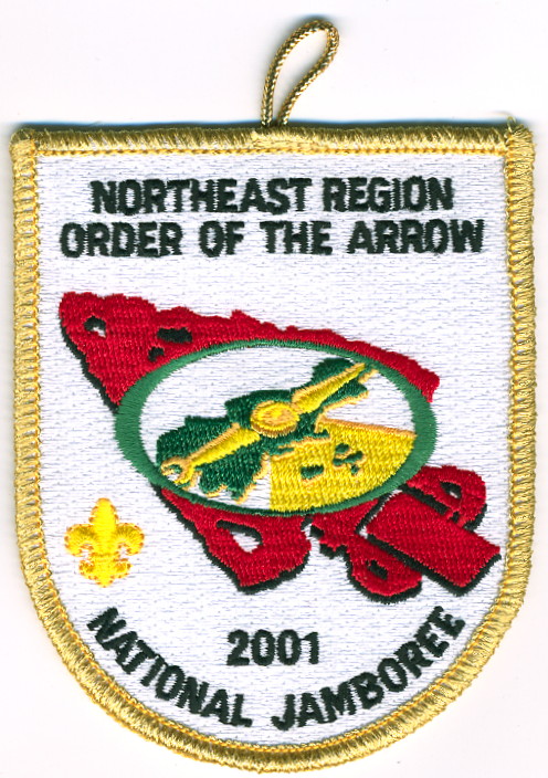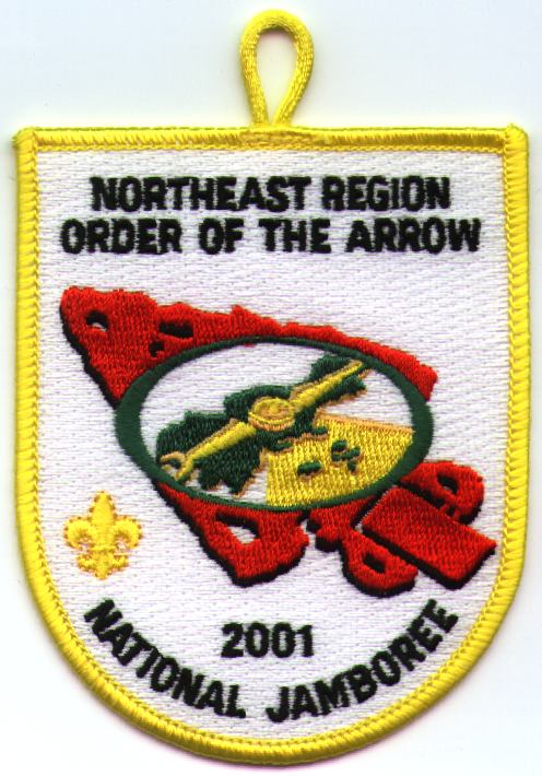 Wht | GMy | R | Blk | shield | Yel | Compass on arrowhead; 2001 National Jamboree; button loop; Region Chief’s issue |