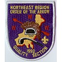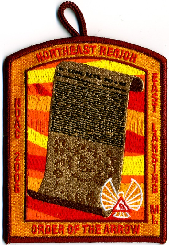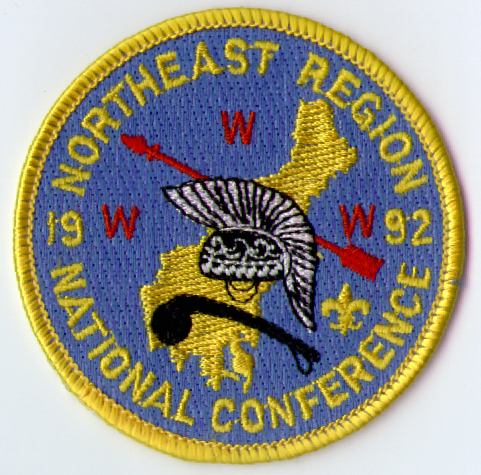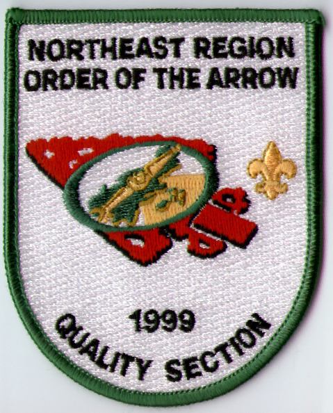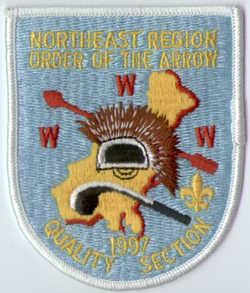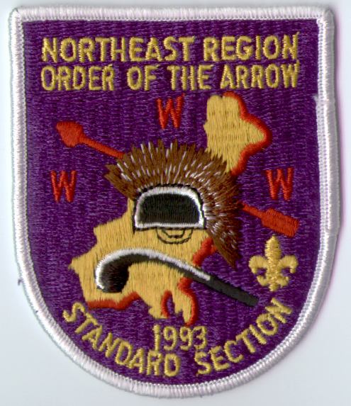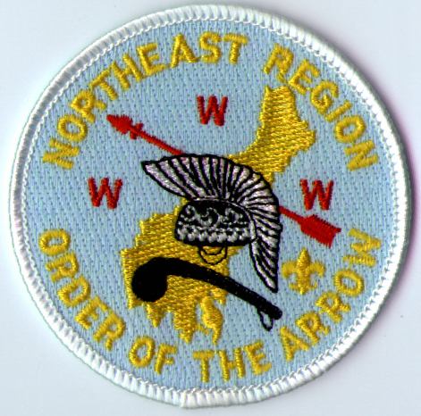 The first two undated patches were issued in the early 1990s. The roach and war club design was used on many Northeast Region OA patches from 1987–1998. In 1999, this was replaced with a second primary design featuring the compass from the new Northeast Region logo superimposed on an arrowhead; this second design has not appeared on a general-purpose patch.