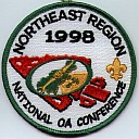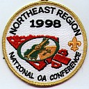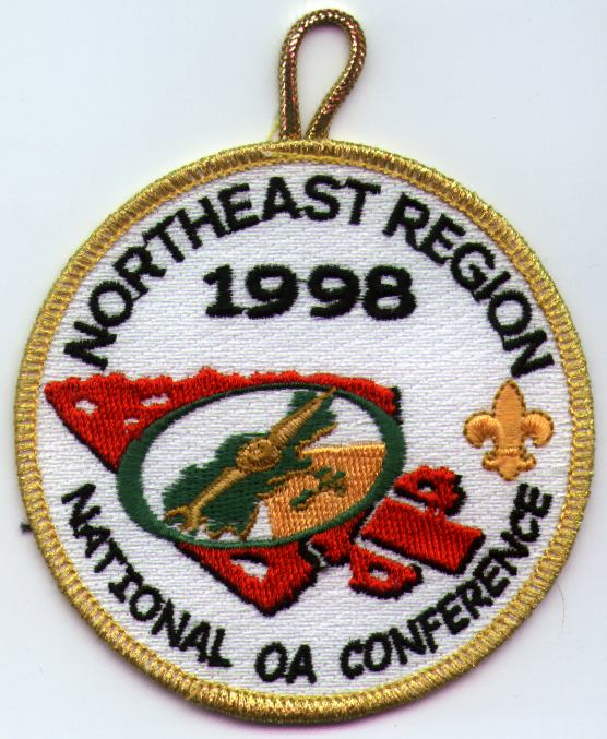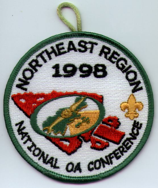 Wht | GMy | R | Blk | round | Yel | Compass on arrowhead; NOAC 1998; button loop; Region Chief’s issue |
