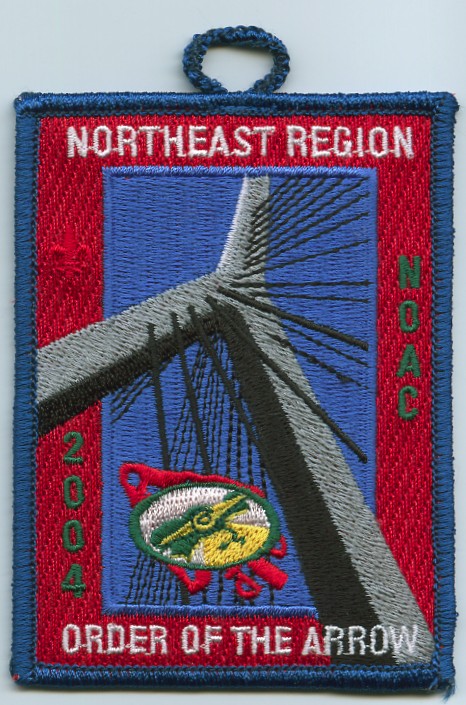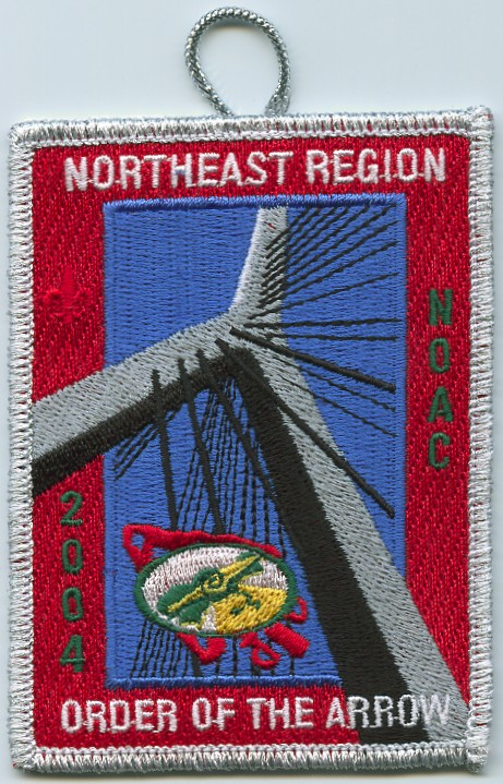 2004 NOAC | M/C | Blu | R | Wht/Grn | vrect | Red | Bridge and cables; NOAC 2004; button loop |