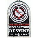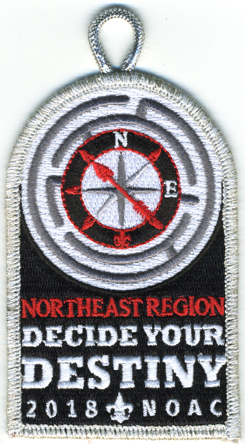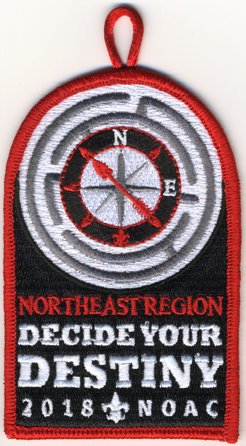 Blk | SMy | R | Red/Wht | dome | Wht | Compass rose in maze; “Decide Your Destiny”; NOAC 2018; button loop; Region Chairman’s recognition patch |