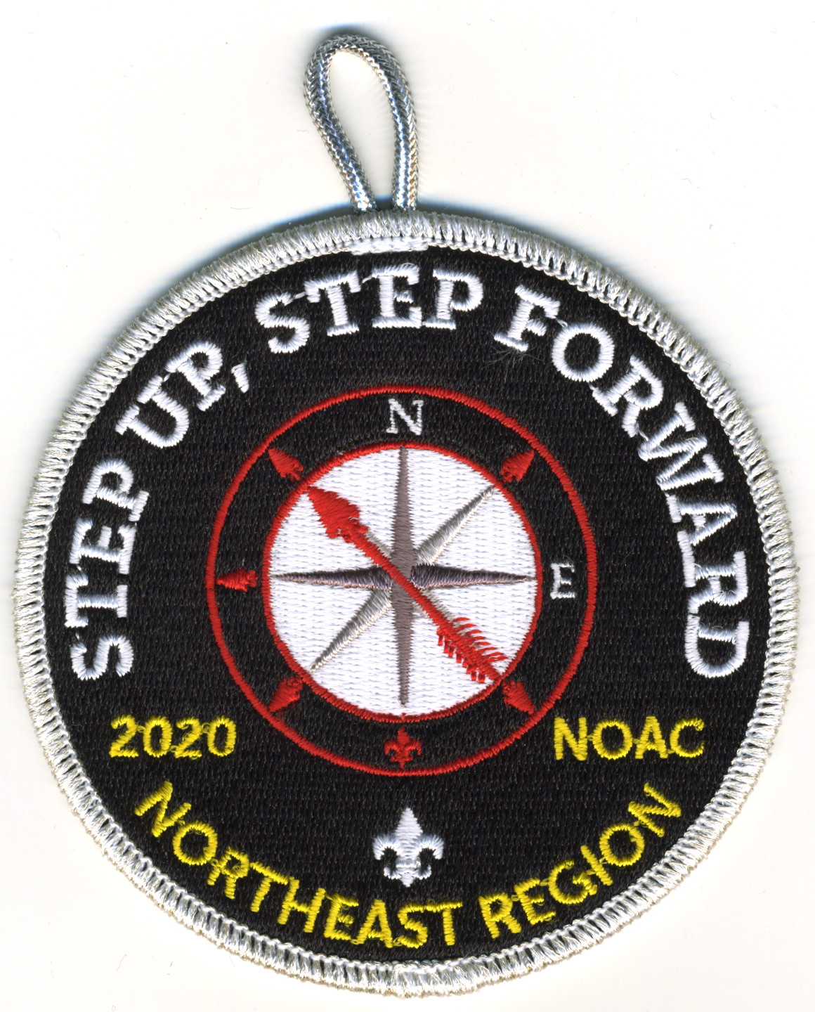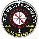 Blk | SMy | R | Wht/Yel | round | Wht | Compass rose; “Step Up, Step Forward”; NOAC 2020; button loop; Region Chairman’s thank you patch; event canceled |