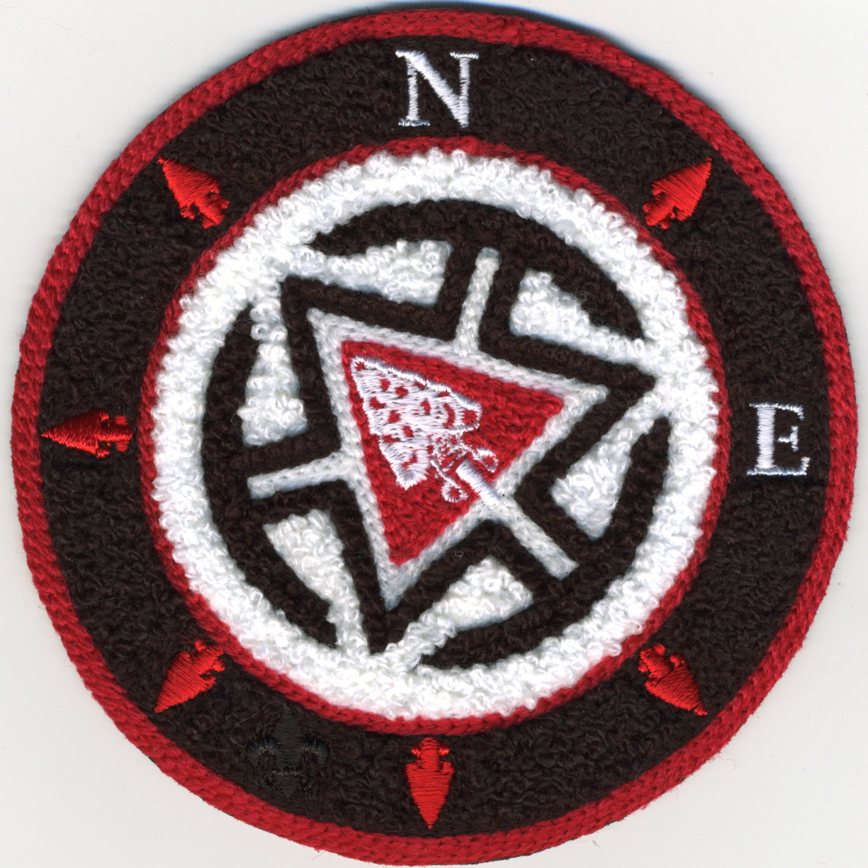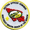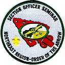 1999–2002 Section Officers Seminar Staff | Wht | SMy | R | Blk | dome | Yel | Staff patch used for four years; compass on arrowhead; button loop |