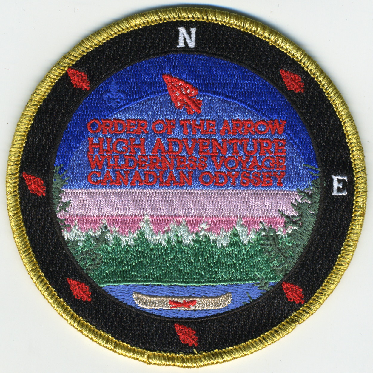 Blk | GMy | R | Red/Wht | round | Blu | Canoe; “Order of the Arrow High Adventure”; “Wilderness Voyage Canadian Odyssey” |