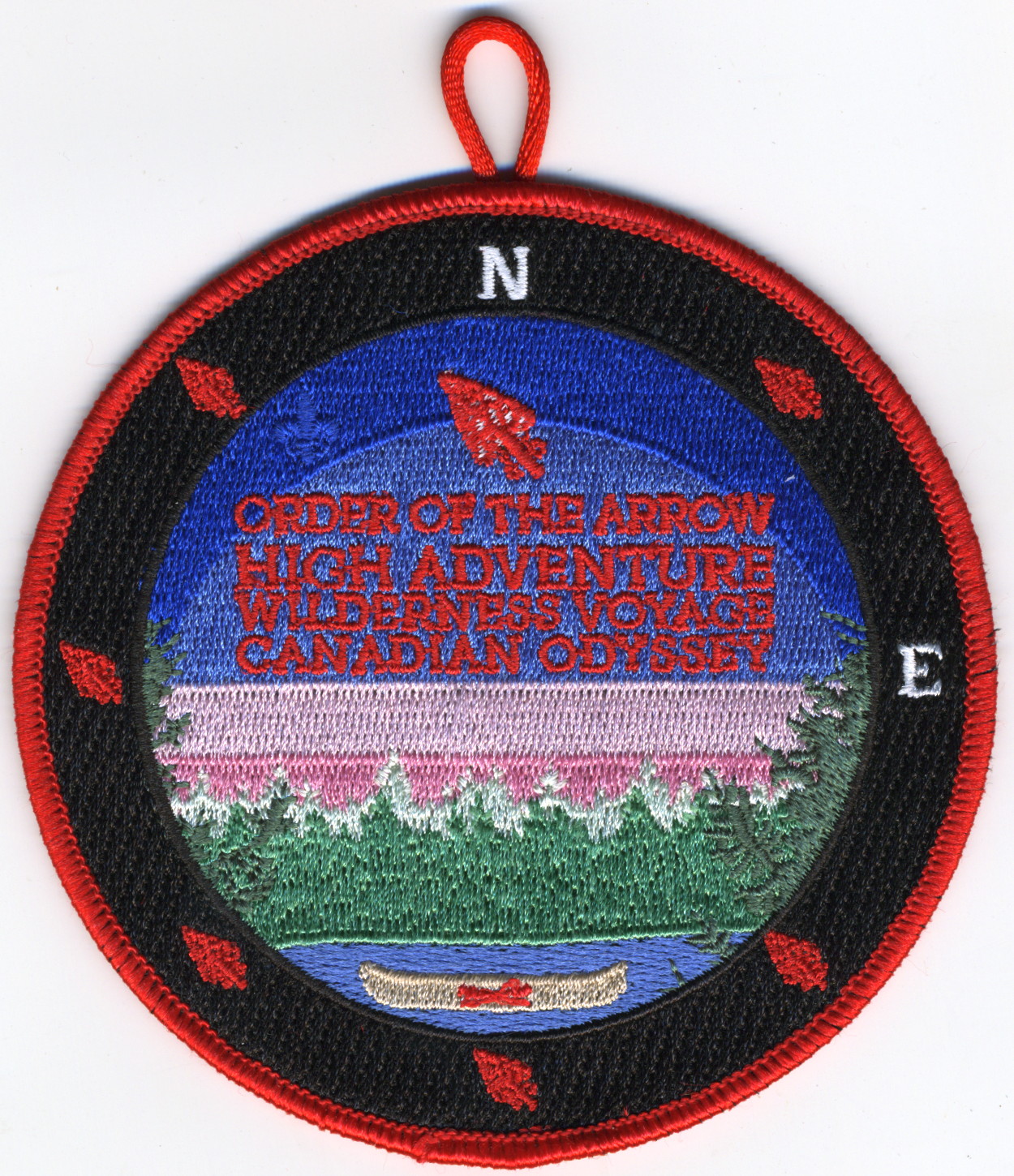 Blk | Red | R | Red/Wht | round | Blu | Canoe; “Order of the Arrow High Adventure”; “Wilderness Voyage Canadian Odyssey”; button loop |