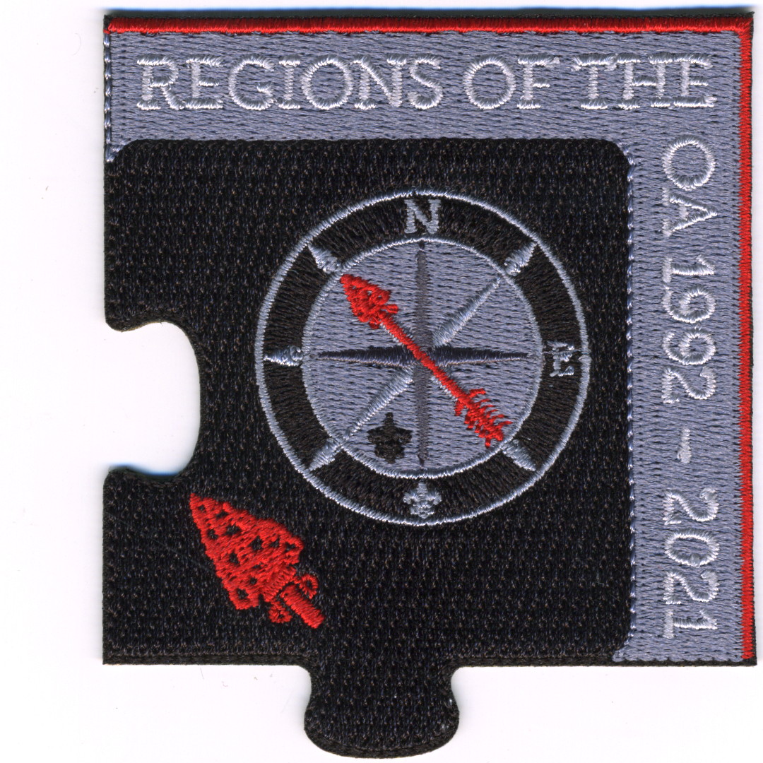Region Memorial | M/C | Blk | C | Gry | odd | Gry/Blk | Puzzle piece from national region memorial set; compass rose logo; “Regions of the OA 1992–2021” |