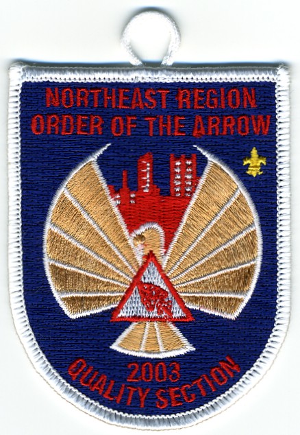 2003 Quality Section | Blu | Wht | R | Red | shield | Yel | stylized eagle and skyline design; button loop |