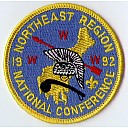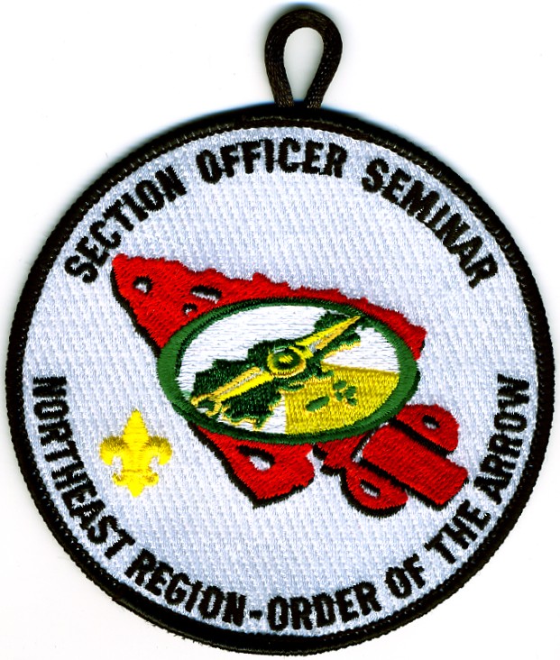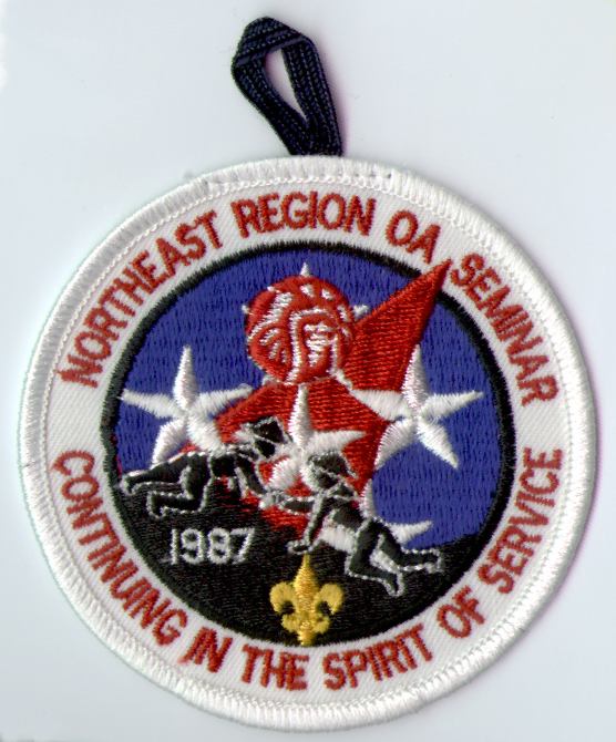 1987 Region OA Seminar | Wht | Wht | R | Red/Wht | round | Yel | Northeast Region OA Seminar 1987; 89mm round with button loop |