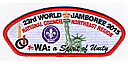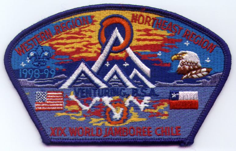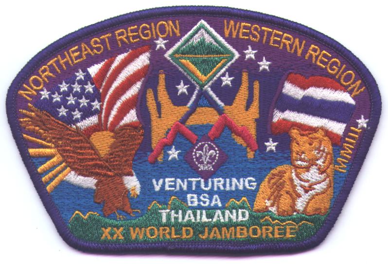 Cherry blossoms; WJ logo, World Crest, Venturing logo, and